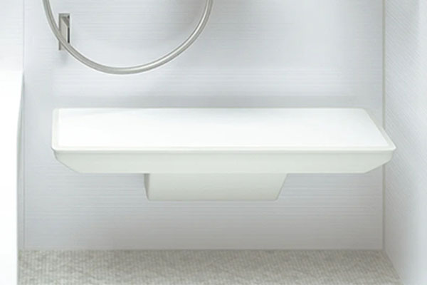 隅々までお掃除しやすいカウンター。壁とカウンターの隙間が空いているので、皮脂汚れや水アカをサッと洗い流せる形状です。